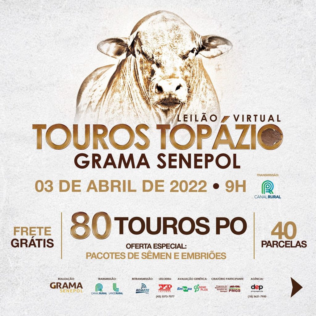 Mais de R$ 3,5 milhões em renda com a comercialização de reprodutores e novilhas PO, além de pacotes de embriões da raça Senepol, fecharam com sucesso os negócios de mais uma edição virtual do “Mega Leilão Grama Senepol”, promovido no dia 2 de abril pelo criador Junior Fernandes.