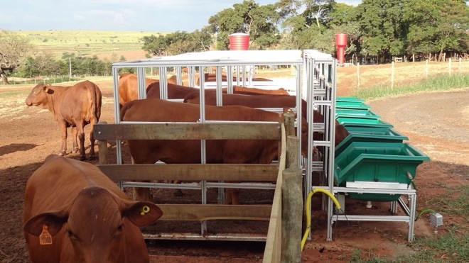 Outra diferença em relação ao que já existe é que para chegar ao cocho a fêmea passa por essa cápsula individual que tem uma plataforma também balança. Ou seja, cada vez que ela entra, seu peso fica registrado, eliminando a necessidade de manejo para pesagem e medição da evolução do animal. Segundo o técnico responsável pela Intergado, Marcelo Neves Ribas, essa prática tem uma segurança muito grande na precisão das informações e vai gerar um número muito maior de dados para o programa.