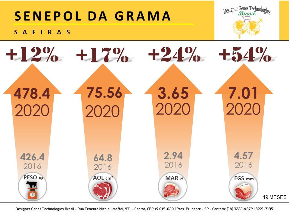 Ao adotar as mais modernas e precisas formas de avaliação e medição das principais características econômicas em pecuária de corte, a Grama Senepol deu um salto gigantesco no seu melhoramento genético ao longo desses 20 anos de seleção, através de tecnologias que permitiram a multiplicação apenas de genética qualificada.